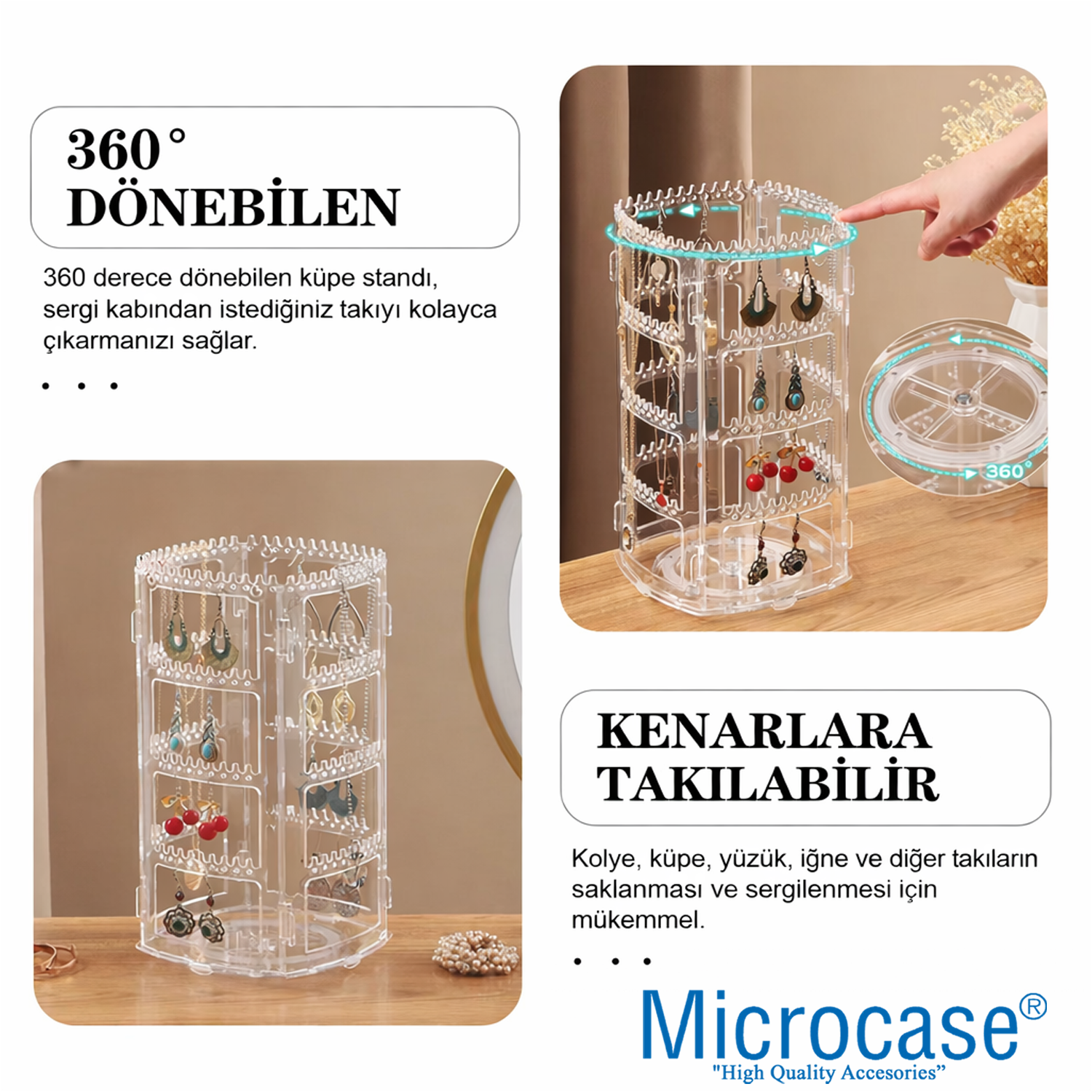 360° dönebilen tasarımı sayesinde tüm küpelerinizi ve takılarınızı tek noktadan kolayca görmenizi ve seçmenizi sağlar