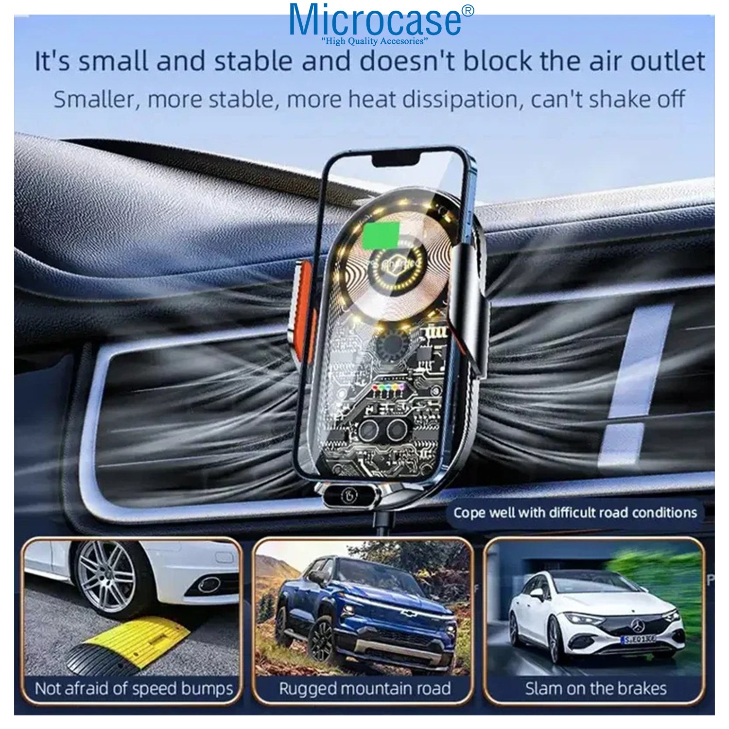 Microcase Araç İçi 360 Dönerli El Sensörlü Wireless Kablosuz Şarj Özellikli Telefon Tutucu - AL4328