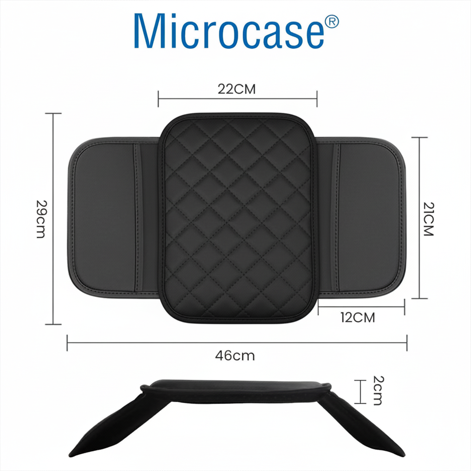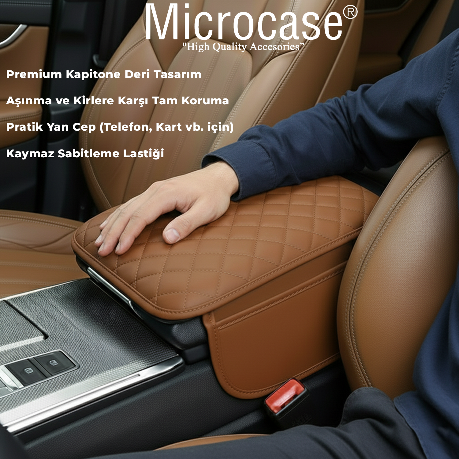 Microcase Araç Merkezi Konsol Kapağı Capitone Deri Araç Kol Dayama Yastığı Depolama Cepli - AL5395