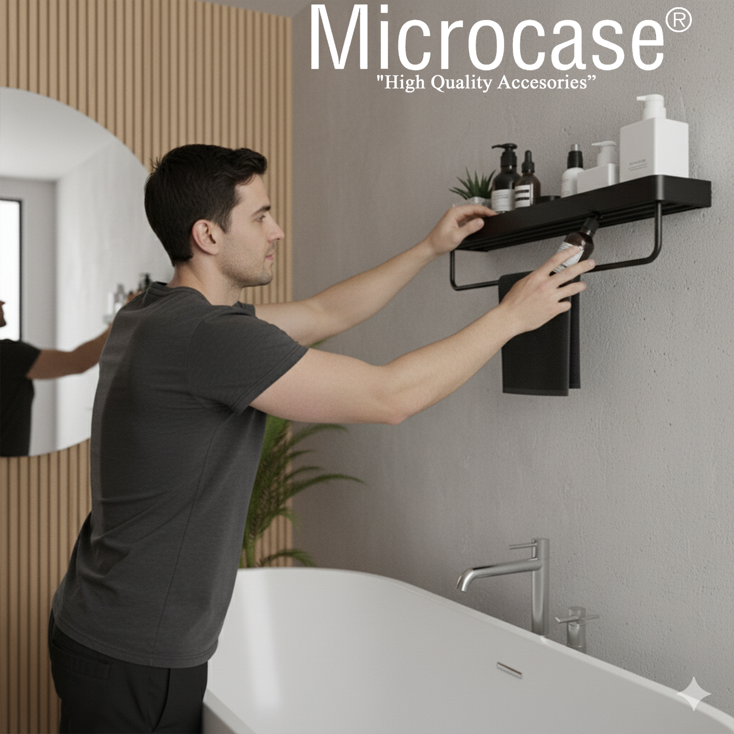 Microcase Çok Amaçlı Modern Duvar Rafı ve Havlu Askılığı Banyo Mutfak Malzeme Düzenleyici Siyah AL5340