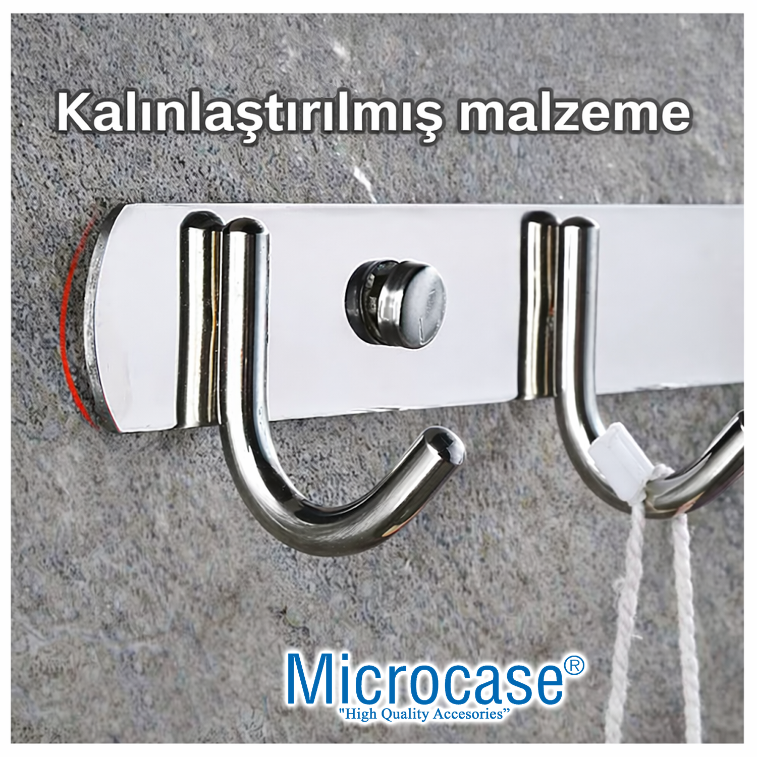 Dört adet güçlü kanca yapısı, aynı anda birden fazla eşyanın taşınmasına imkan verir. Havlu, bornoz, mutfak gereçleri, çanta, anahtar gibi farklı ürünleri rahatlıkla taşıyabilir. Kancaların yuvarlatılmış uç yapısı, eşyaların düşmesini engelleyerek güvenli bir kullanım sunar.