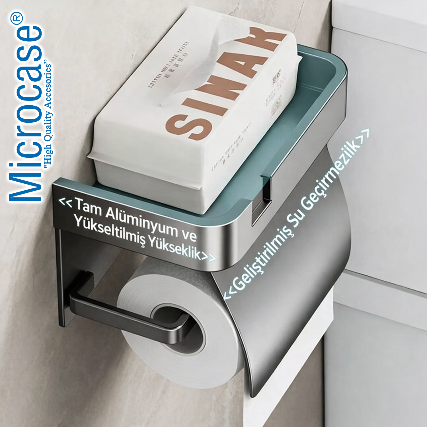 Sıçrama önleyici kapak sistemi sayesinde tuvalet kağıdı suya karşı korunur ve hijyenik kullanım sağlar.