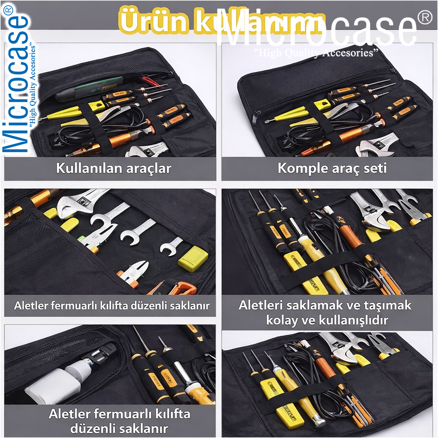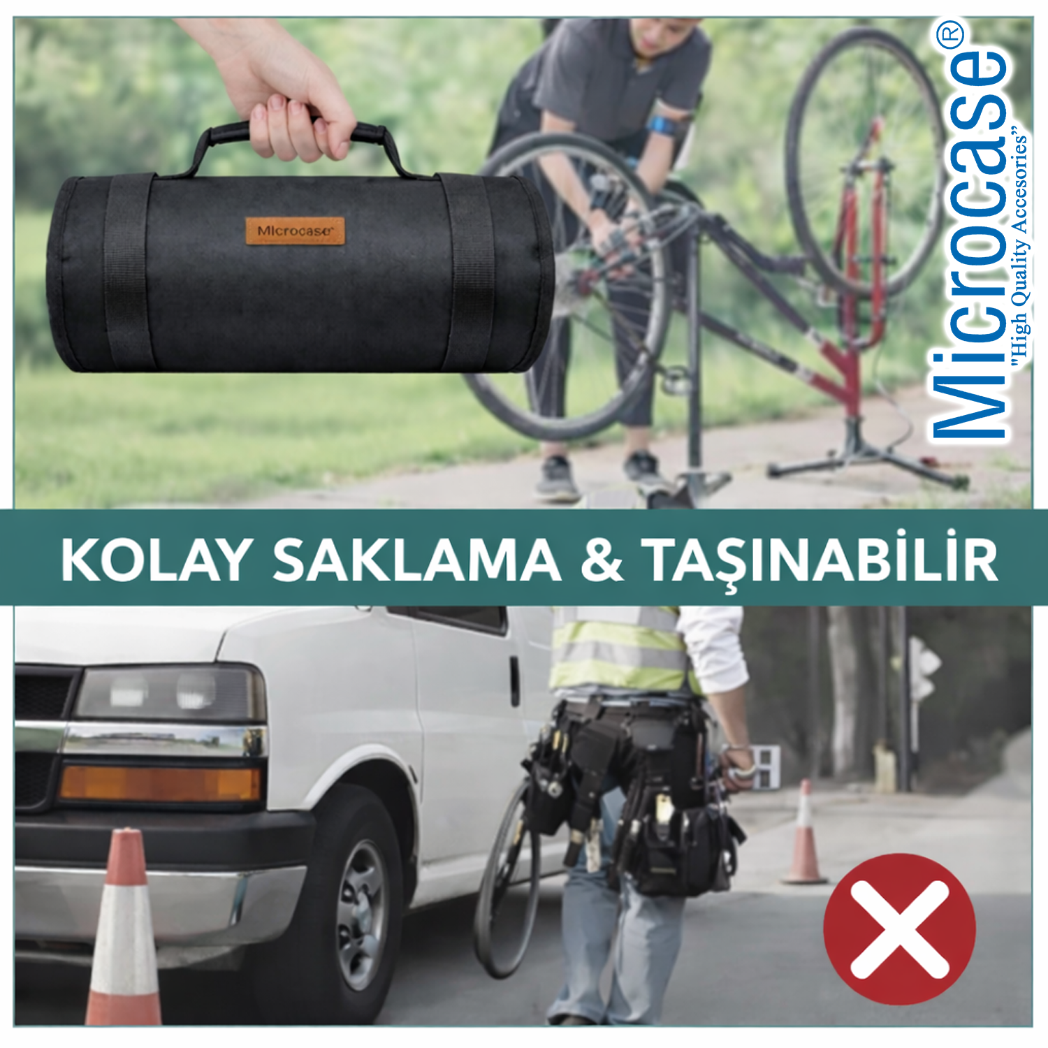 Microcase Motosiklet Bisiklet Elektrikli Araçlar ve Genel Kullanım için Katlanabilir Portatif Alet Çantası AL5514