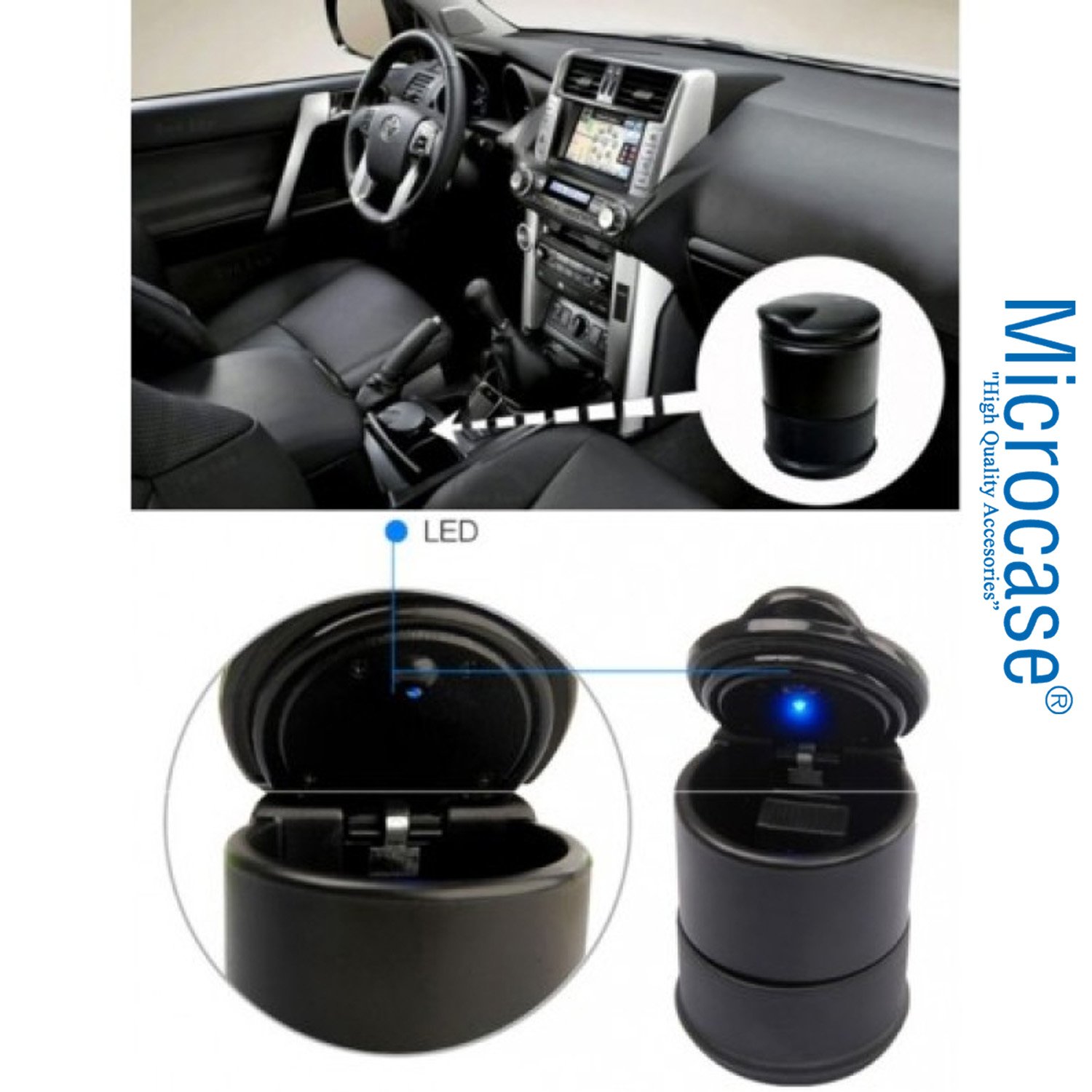 Microcase Oto Araç İçi Led Işıklı Kapaklı Küllük - AL4879